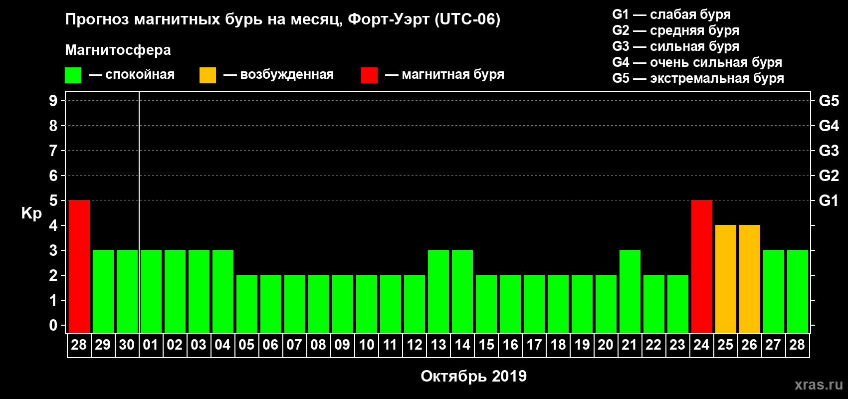 Прогноз магнитных бурь в Форт-Уэрте — 28 сентября 2019 года