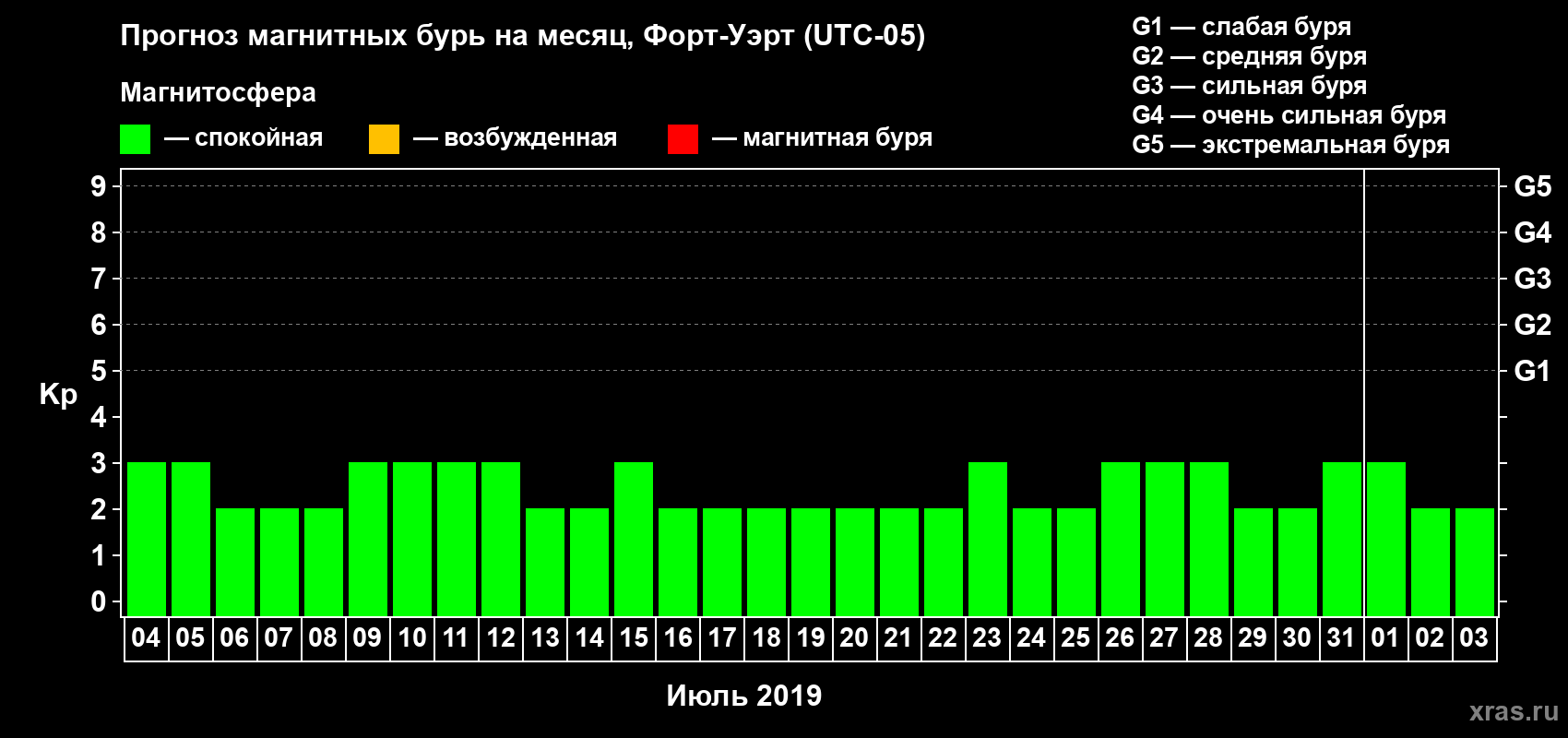 Прогноз магнитных бурь в Форт-Уэрте на 4 июля 2019 года