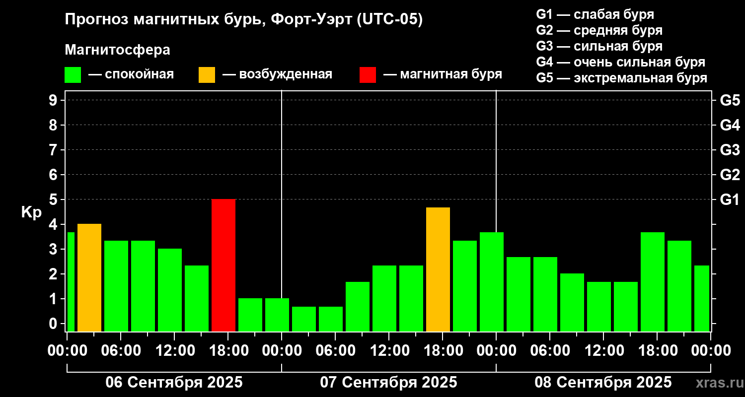 Прогноз магнитных бурь в Форт-Уэрте на 6 сентября 2025 года