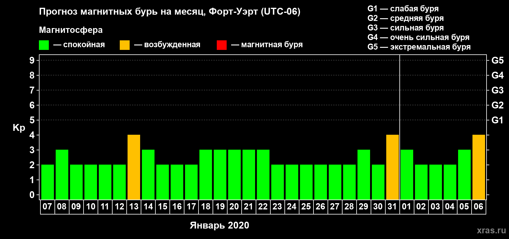 Прогноз магнитных бурь в Форт-Уэрте — 7 января 2020 года