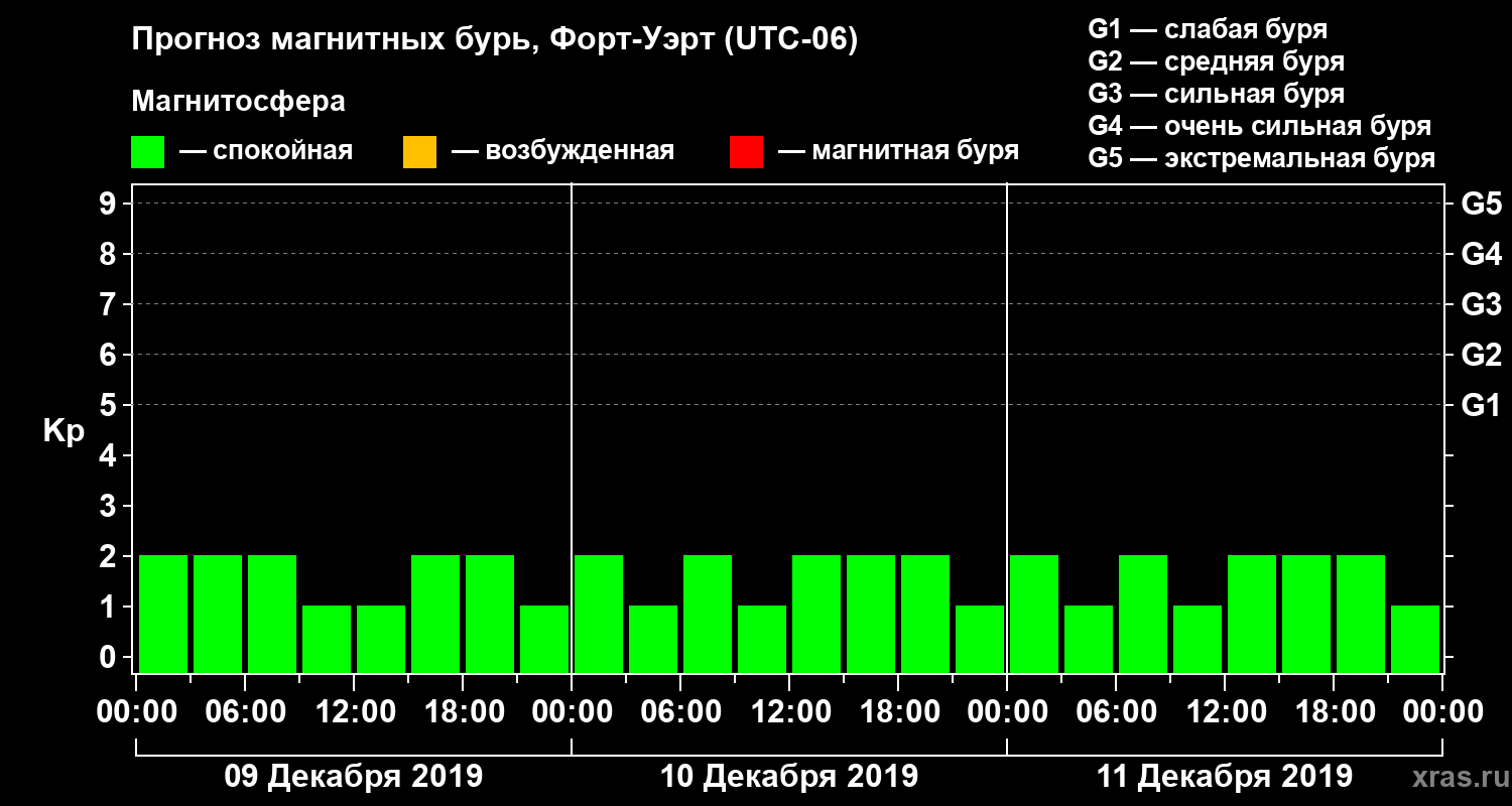 Прогноз магнитных бурь в Форт-Уэрте на 9 декабря 2019 года
