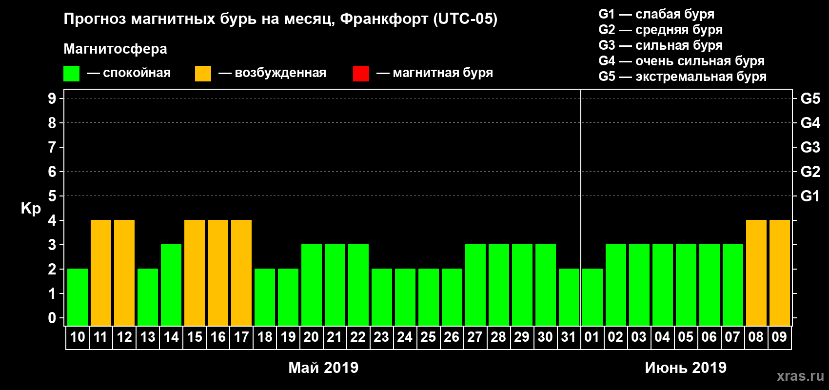 Прогноз магнитных бурь в Франкфорте — 10 мая 2019 года