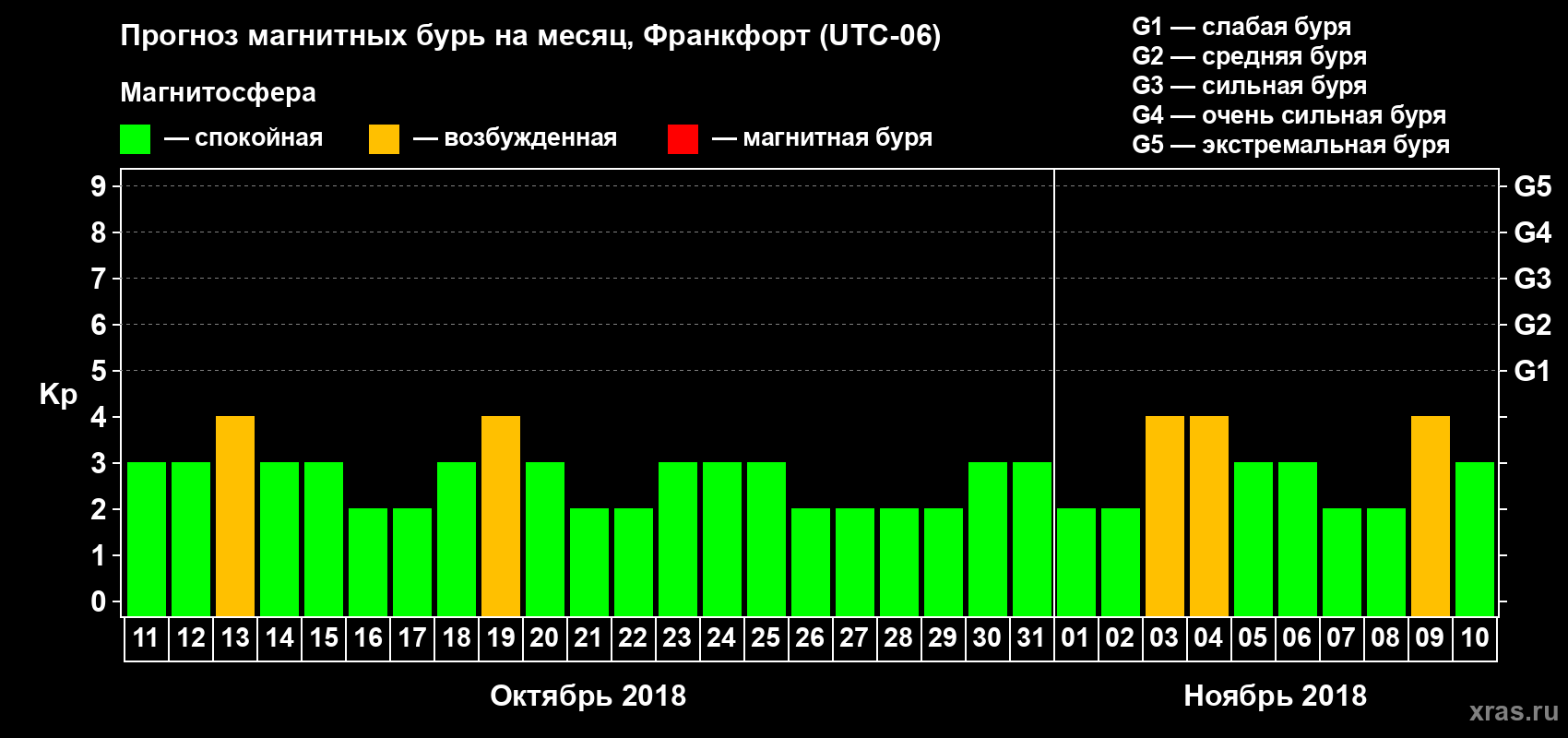 Прогноз магнитных бурь в Франкфорте — 11 октября 2018 года