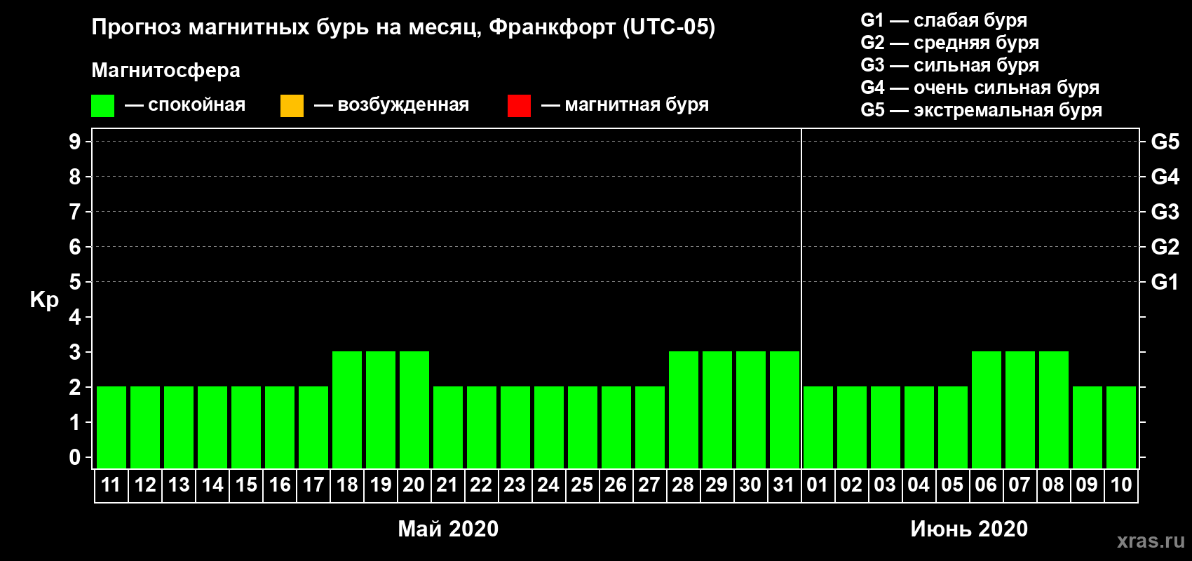 Прогноз магнитных бурь в Франкфорте — 11 мая 2020 года