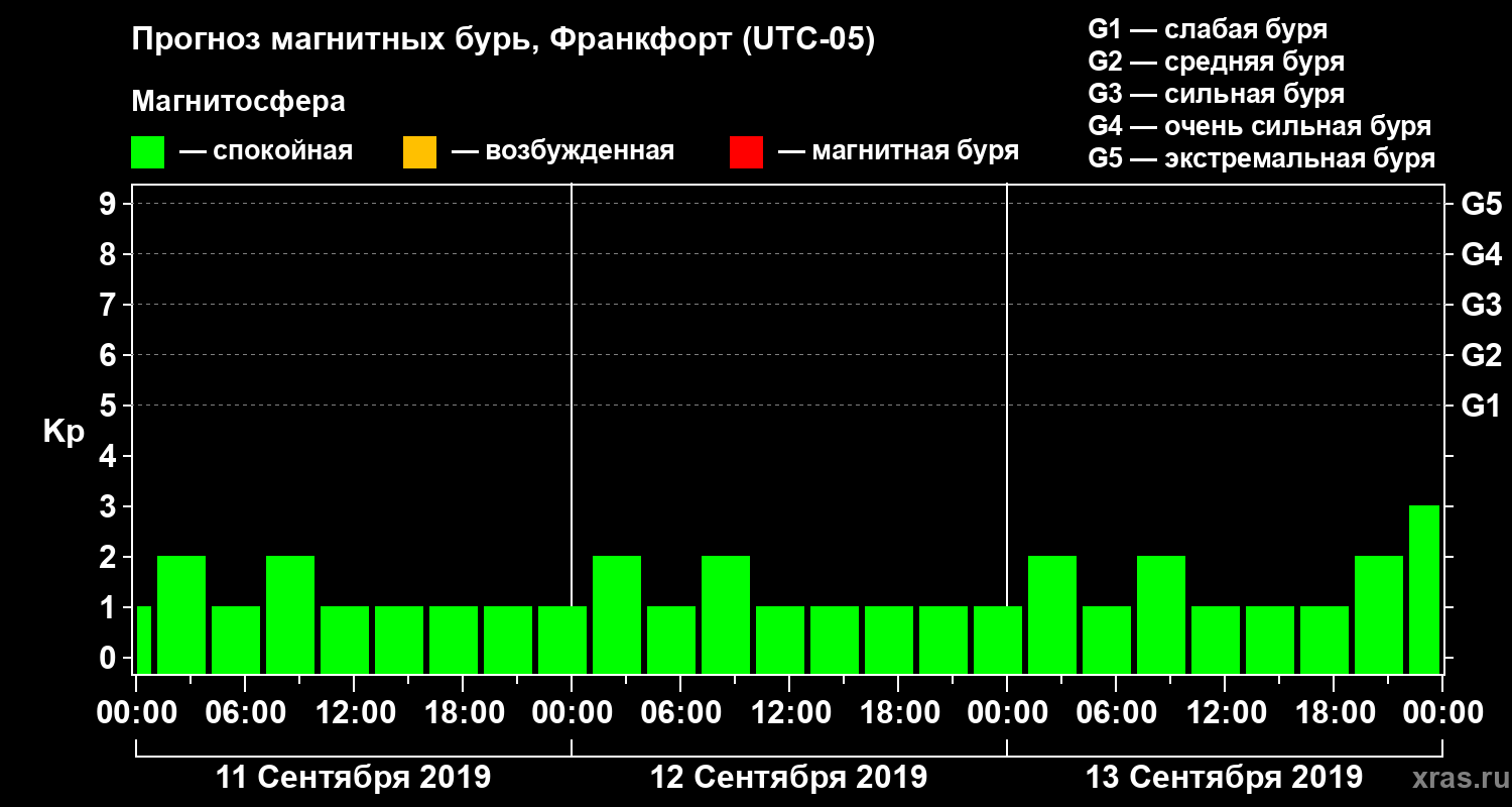 Прогноз магнитных бурь в Франкфорте — 11 сентября 2019 года