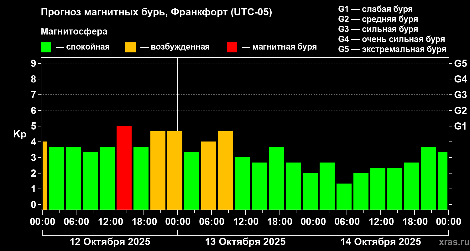 Прогноз магнитных бурь в Франкфорте — 12 октября 2025 года
