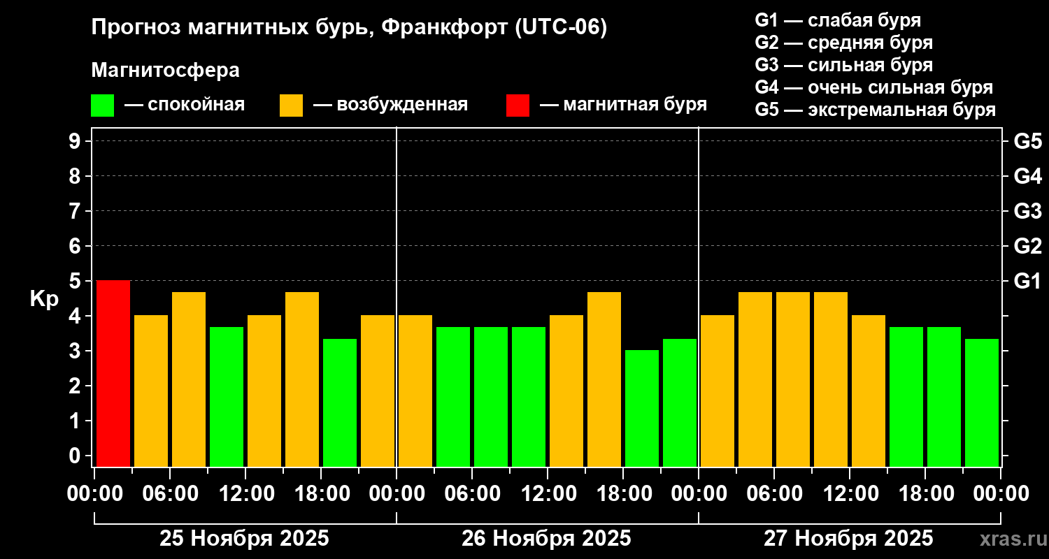 Прогноз магнитных бурь в Франкфорте — 25 ноября 2025 года