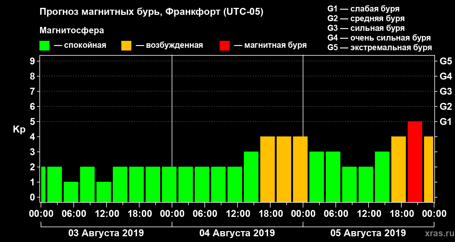 Прогноз магнитных бурь в Франкфорте — 3 августа 2019 года