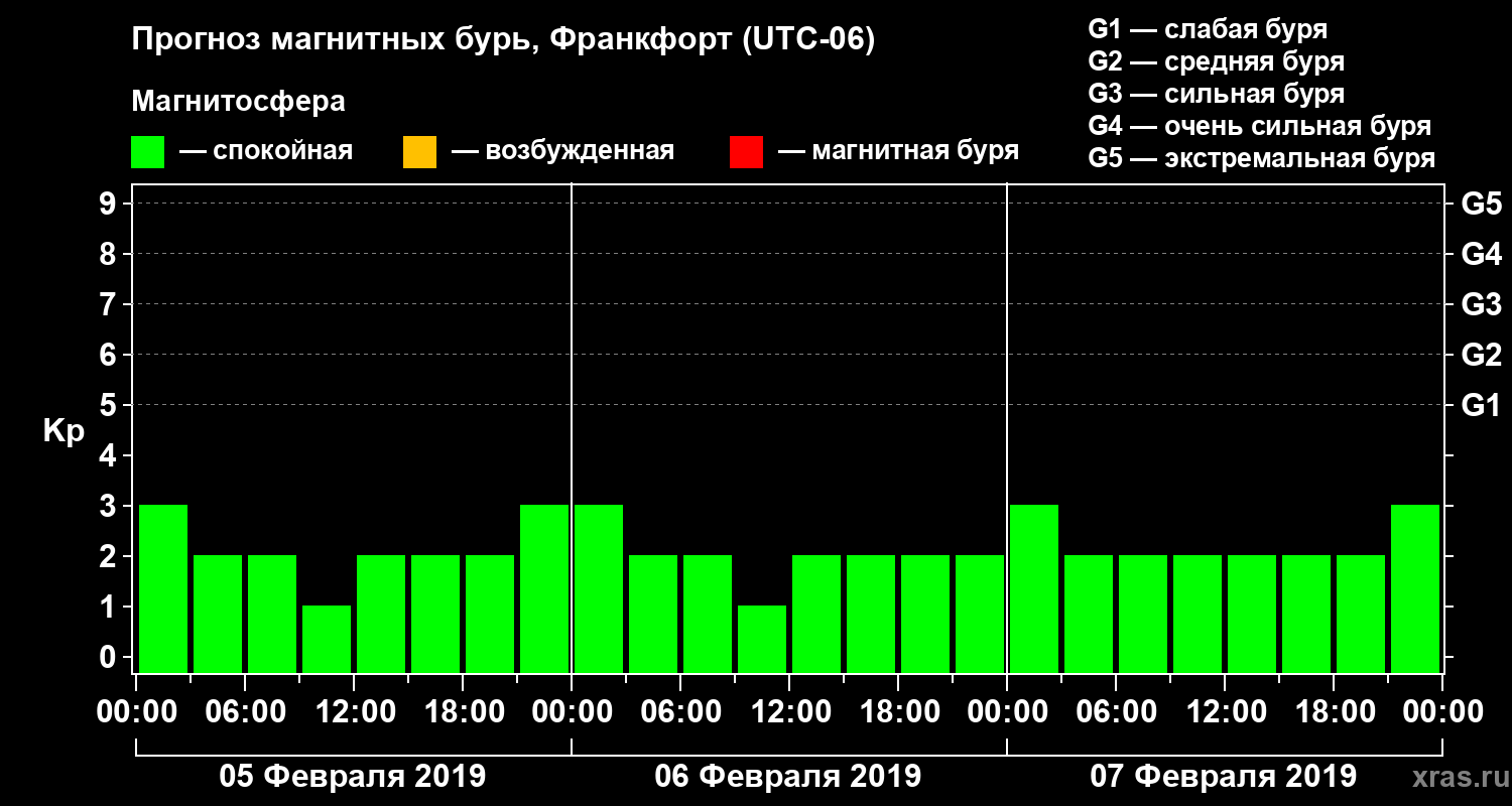 Прогноз магнитных бурь в Франкфорте — 5 февраля 2019 года