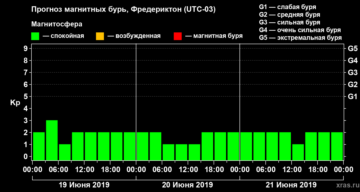 Прогноз магнитных бурь в Фредериктоне — 19 июня 2019 года