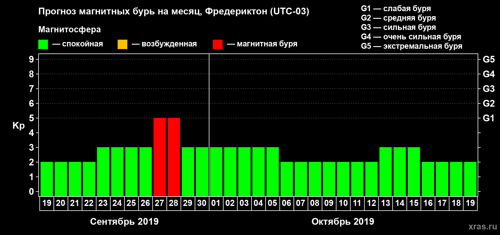 Прогноз магнитных бурь в Фредериктоне — 19 сентября 2019 года