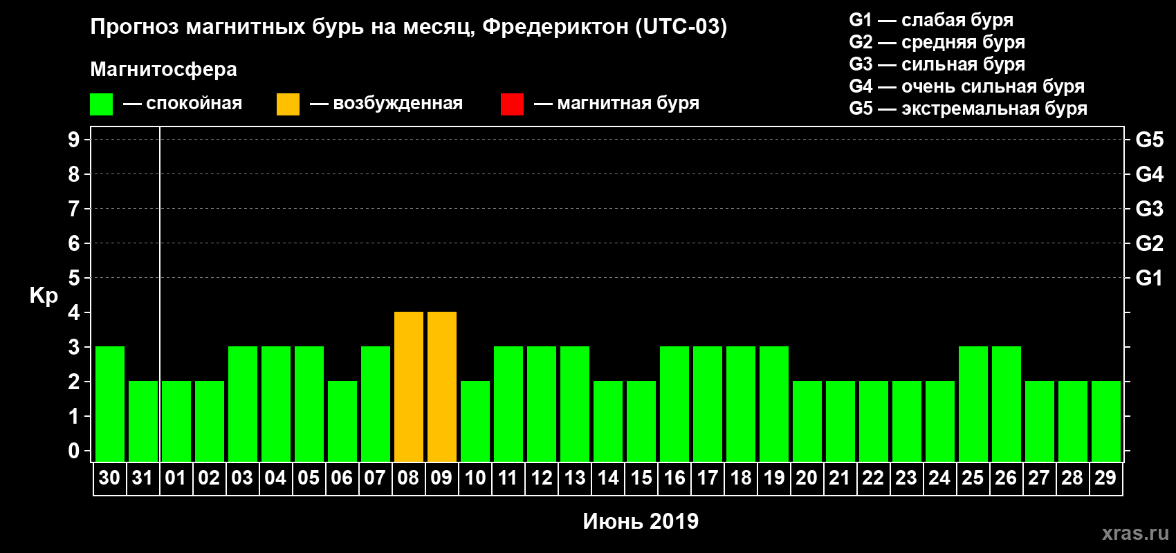 Прогноз магнитных бурь в Фредериктоне — 30 мая 2019 года