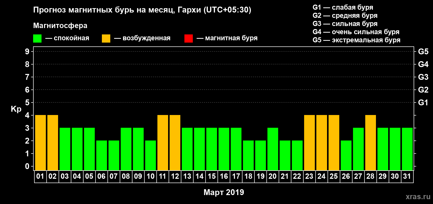 Прогноз магнитных бурь Гархи на 1 марта 2019 года