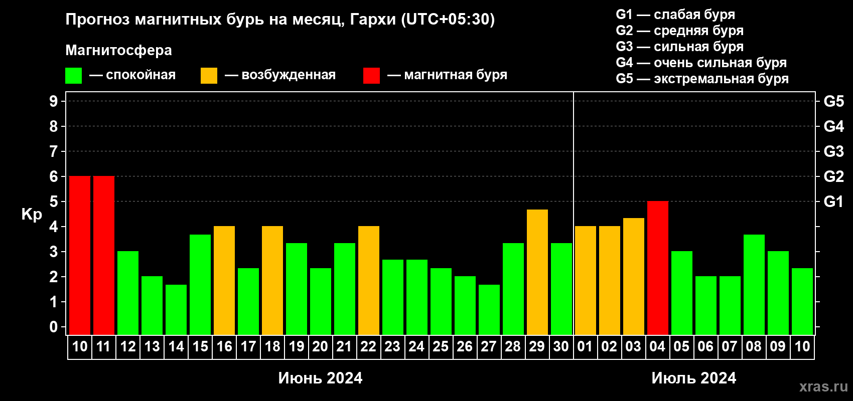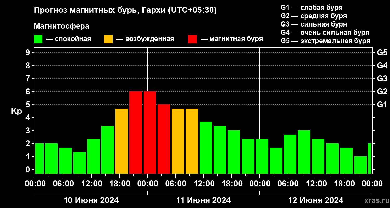 Прогноз магнитных бурь Гархи — 10 июня 2024 года