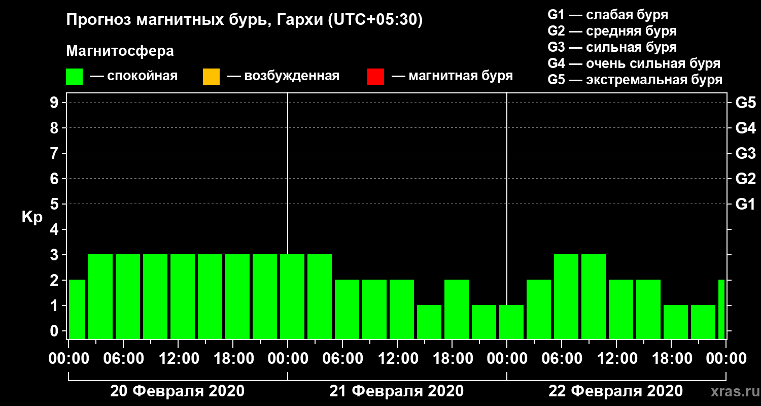 Прогноз магнитных бурь Гархи на 20 февраля 2020 года