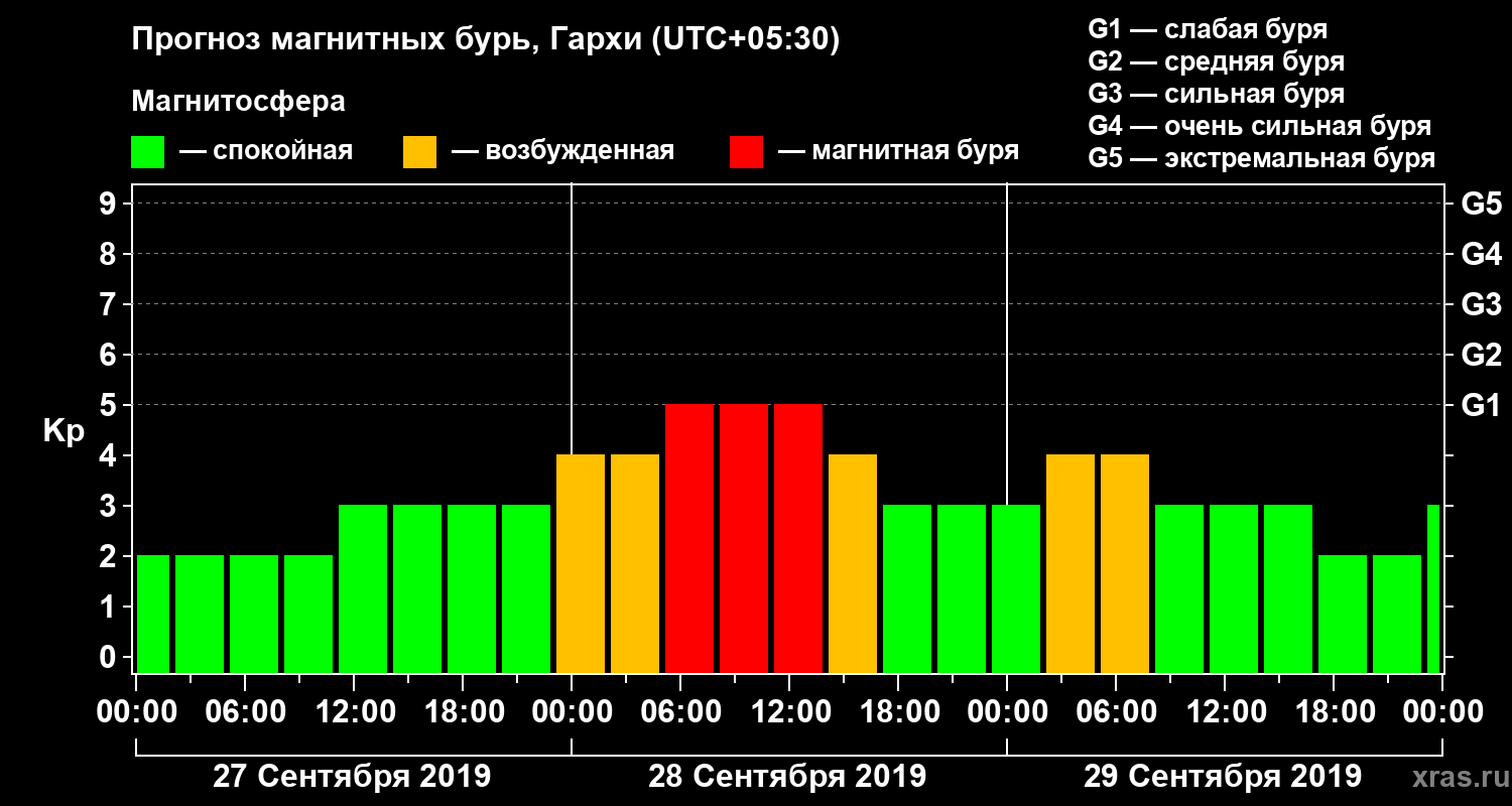 Прогноз магнитных бурь Гархи на 27 сентября 2019 года