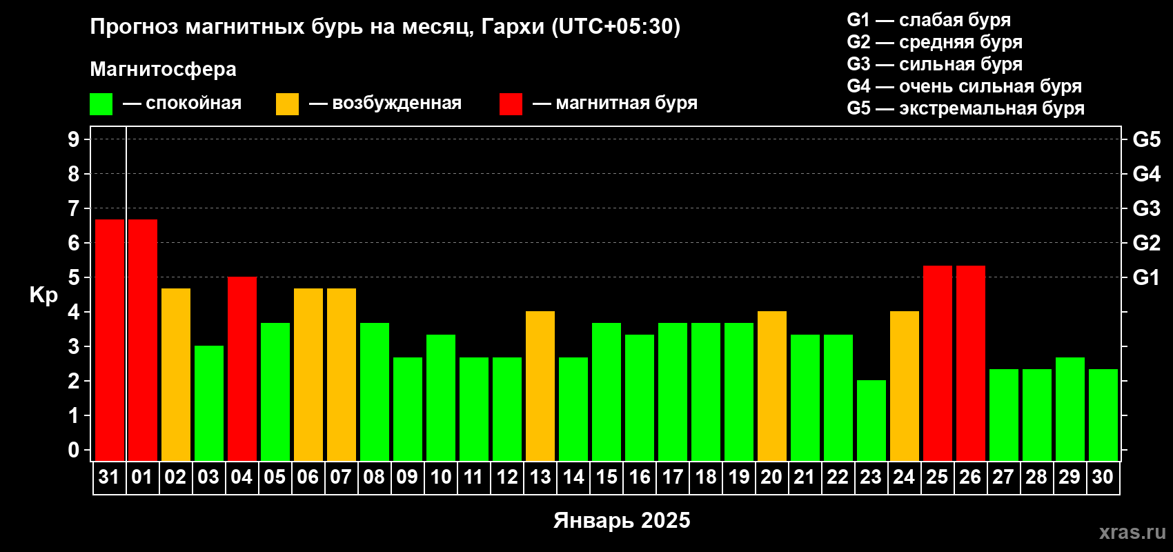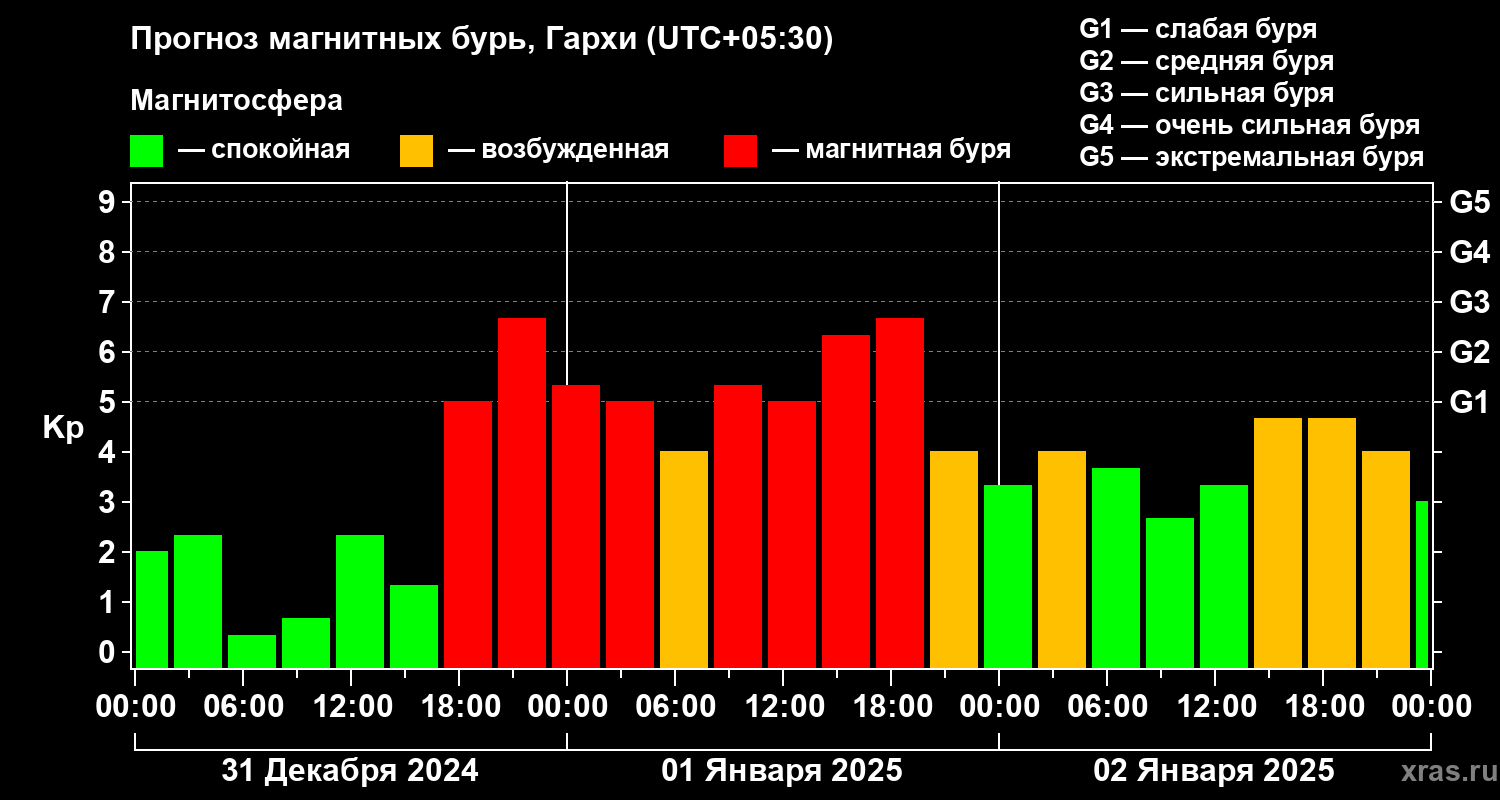 Прогноз магнитных бурь Гархи — 31 декабря 2024 года