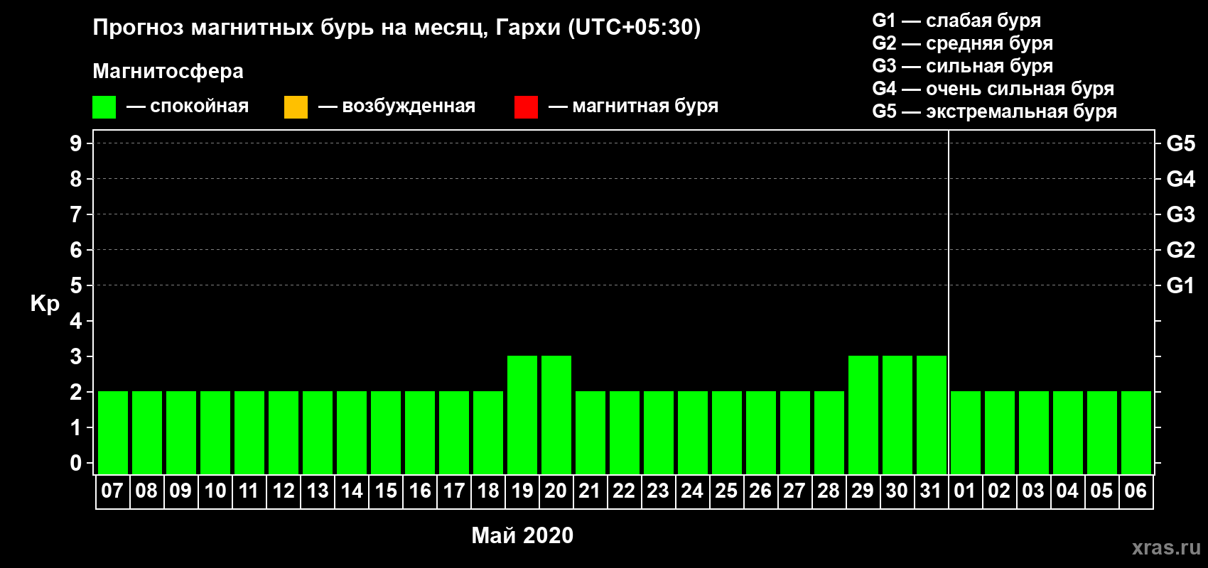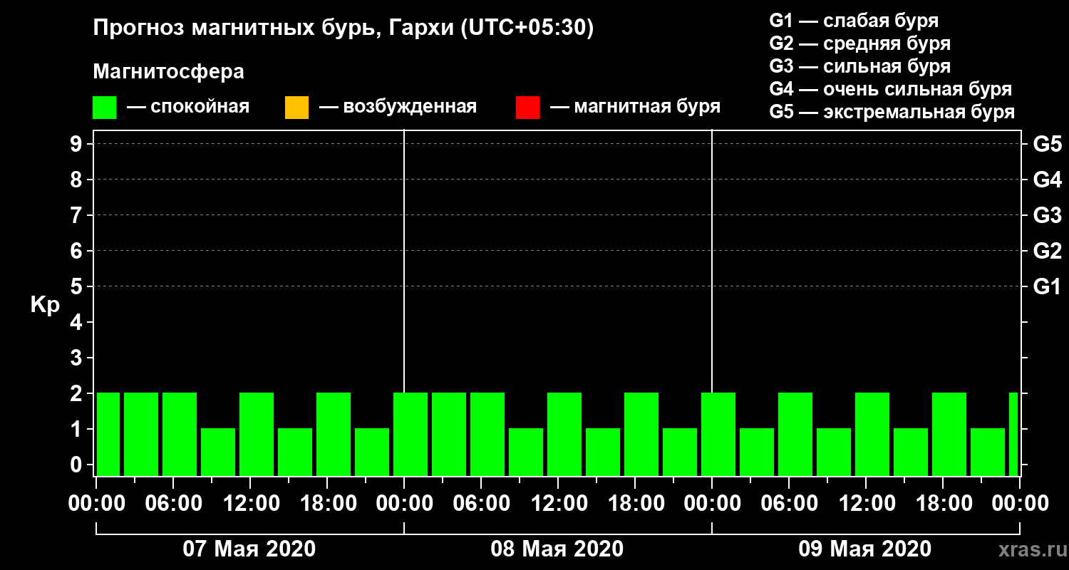 Прогноз магнитных бурь Гархи на 7 мая 2020 года