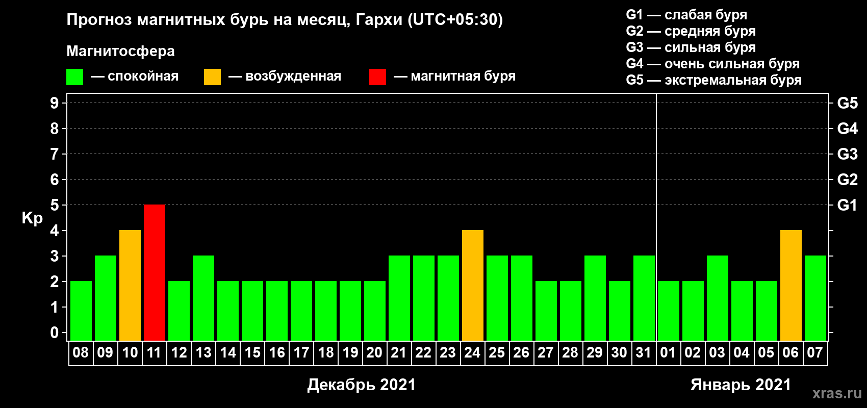 Прогноз магнитных бурь Гархи на 8 декабря 2020 года