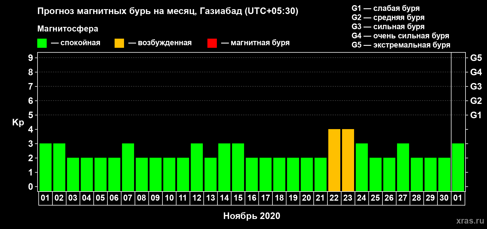 Прогноз магнитных бурь в Газиабаде — 1 ноября 2020 года