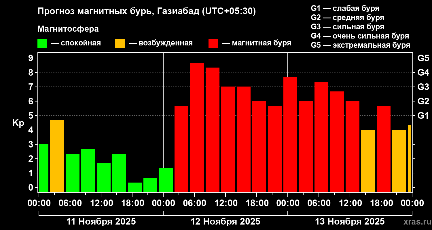 Прогноз магнитных бурь в Газиабаде — 11 ноября 2025 года