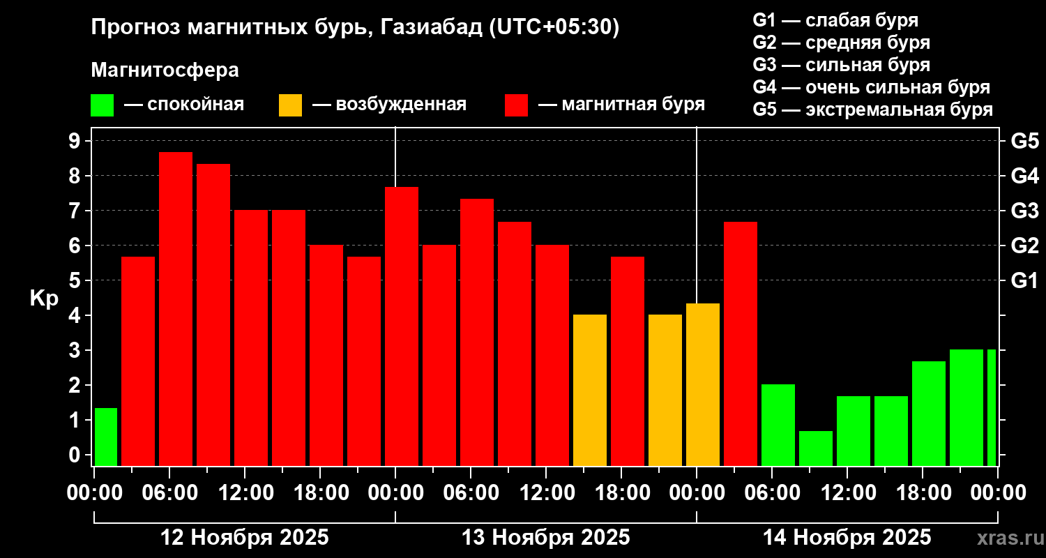 Прогноз магнитных бурь в Газиабаде — 12 ноября 2025 года