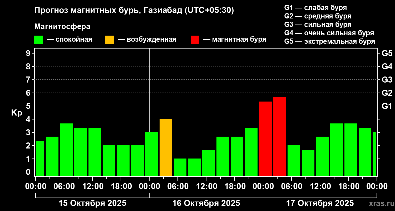 Прогноз магнитных бурь в Газиабаде на 15 октября 2025 года