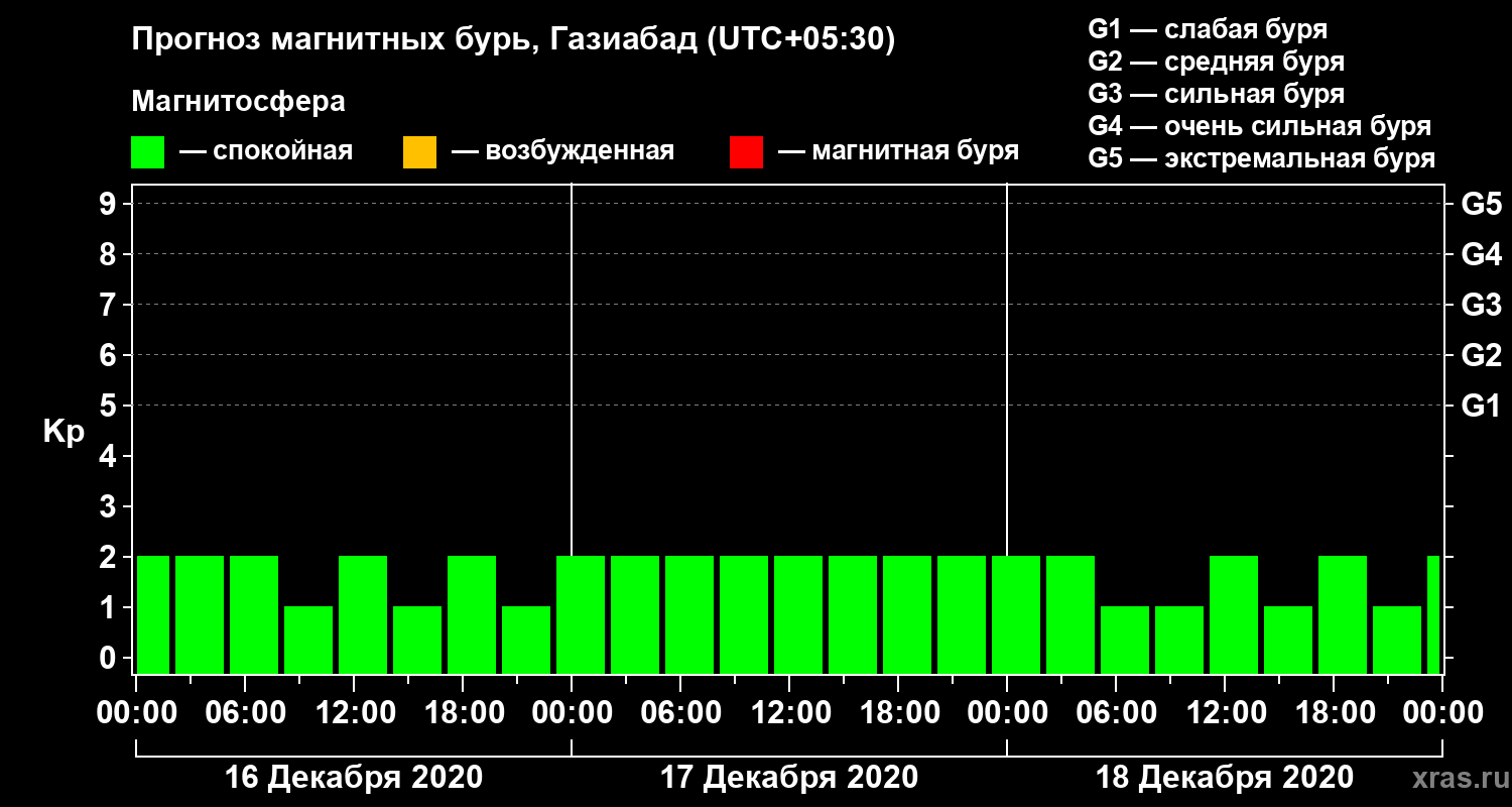 Прогноз магнитных бурь в Газиабаде — 16 декабря 2020 года