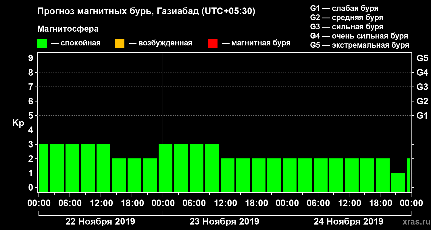 Прогноз магнитных бурь в Газиабаде — 22 ноября 2019 года