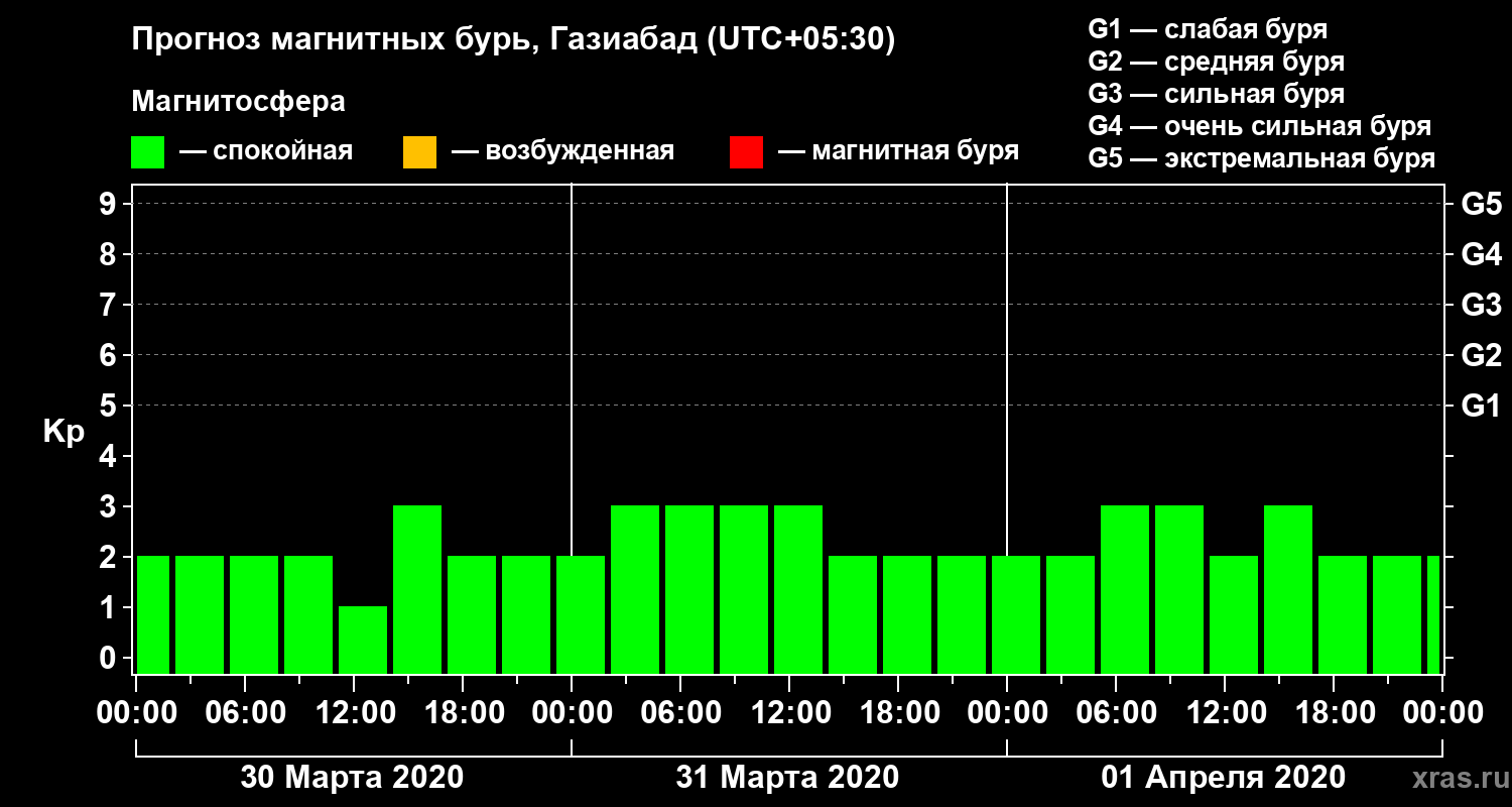Прогноз магнитных бурь в Газиабаде — 30 марта 2020 года