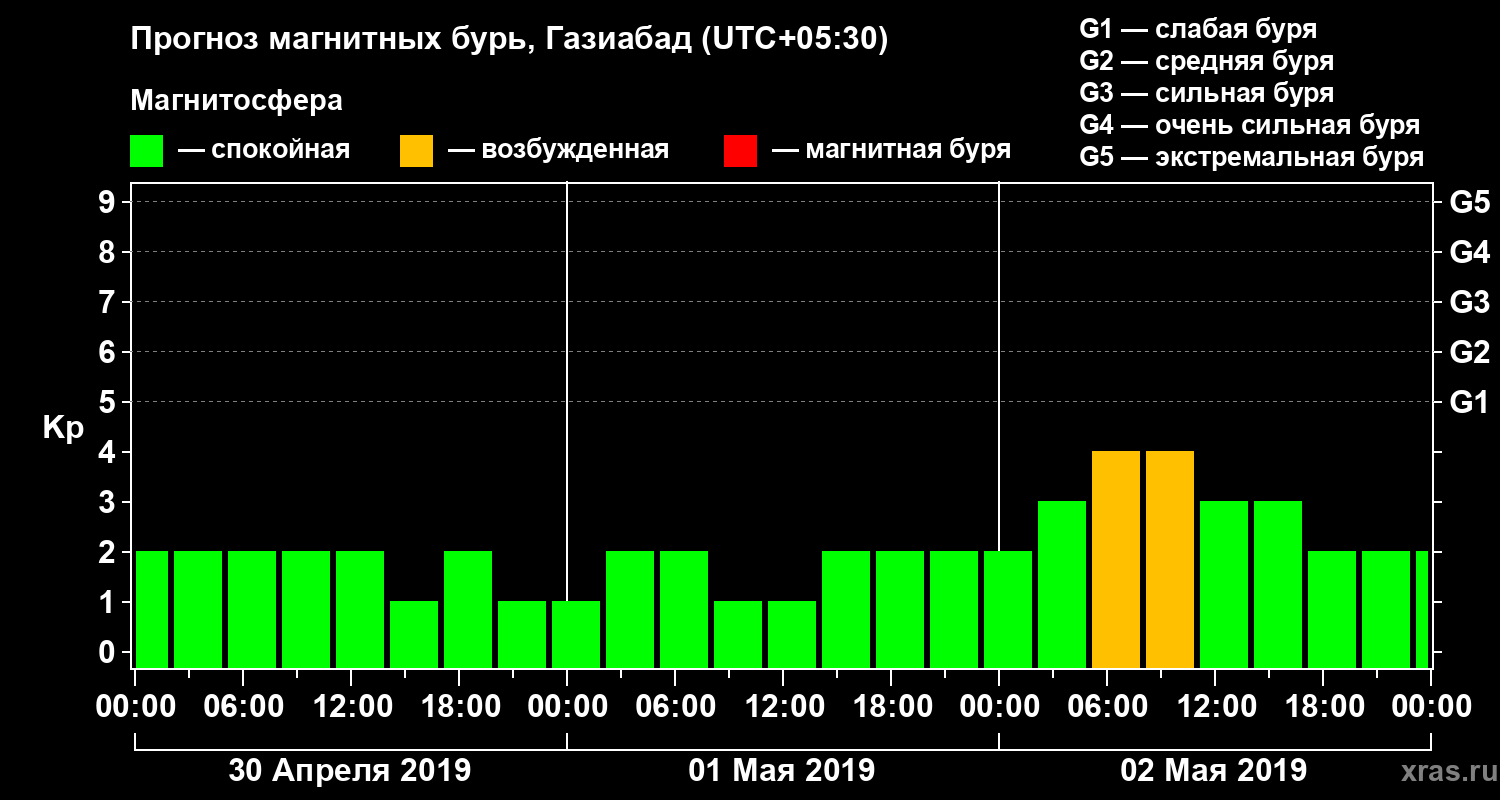 Прогноз магнитных бурь в Газиабаде — 30 апреля 2019 года