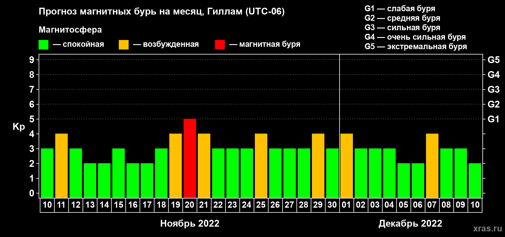 Прогноз магнитных бурь в Гилламе — 10 ноября 2022 года