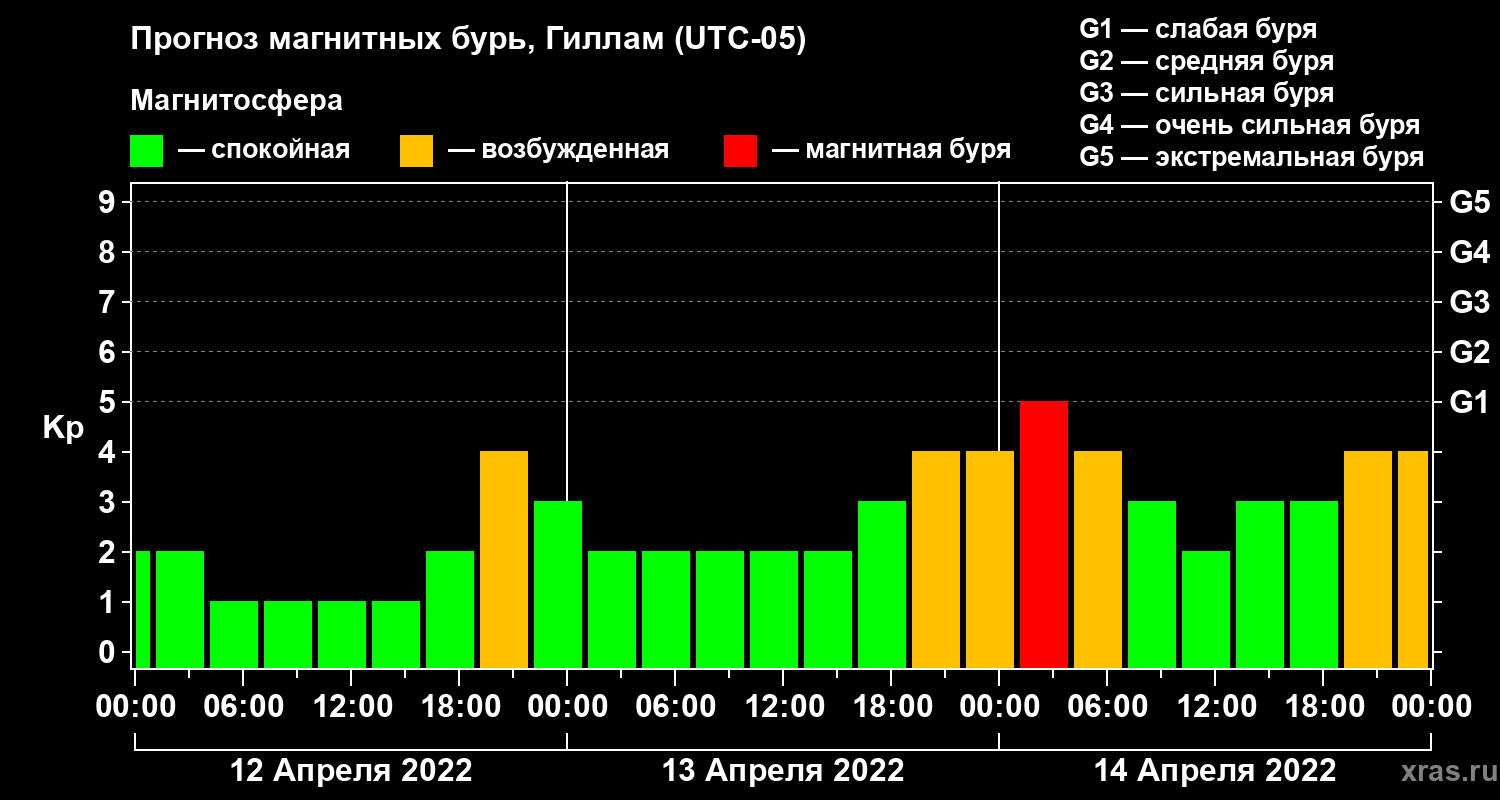 Прогноз магнитных бурь в Гилламе — 12 апреля 2022 года