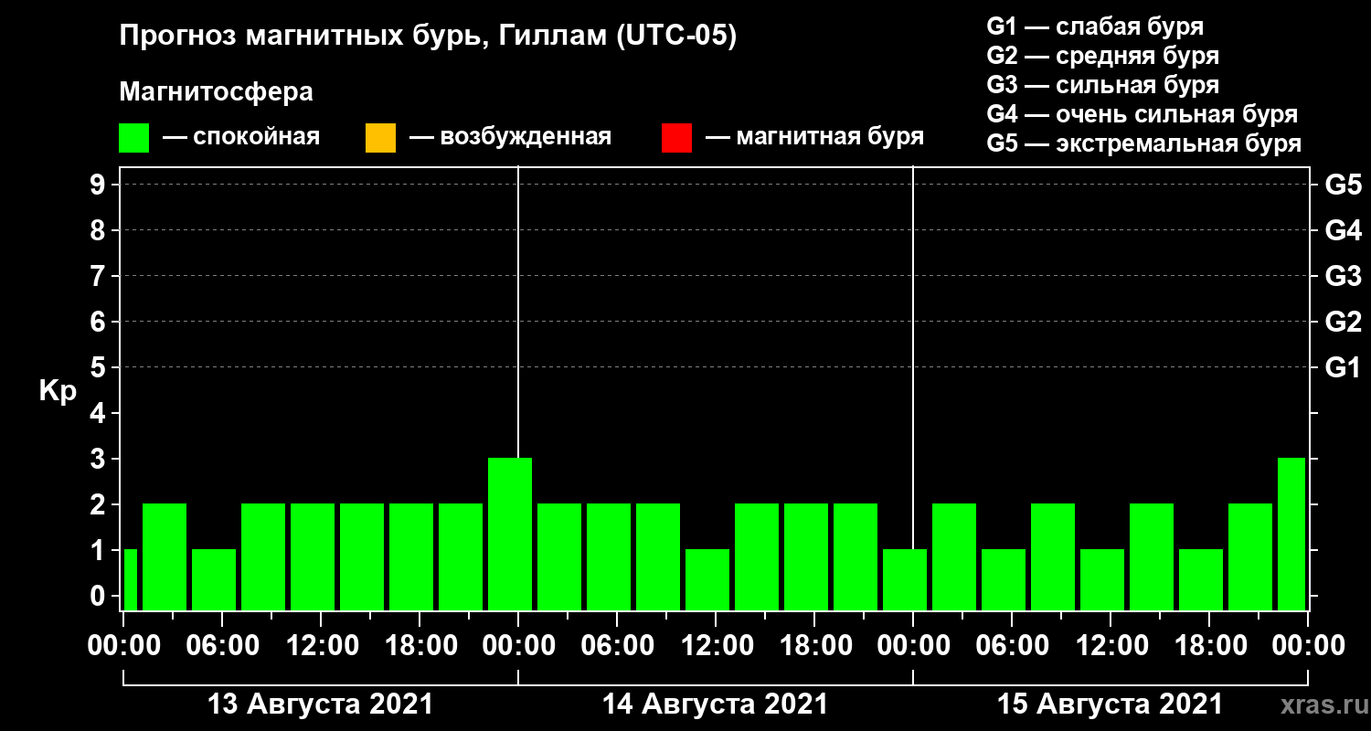 Прогноз магнитных бурь в Гилламе — 13 августа 2021 года