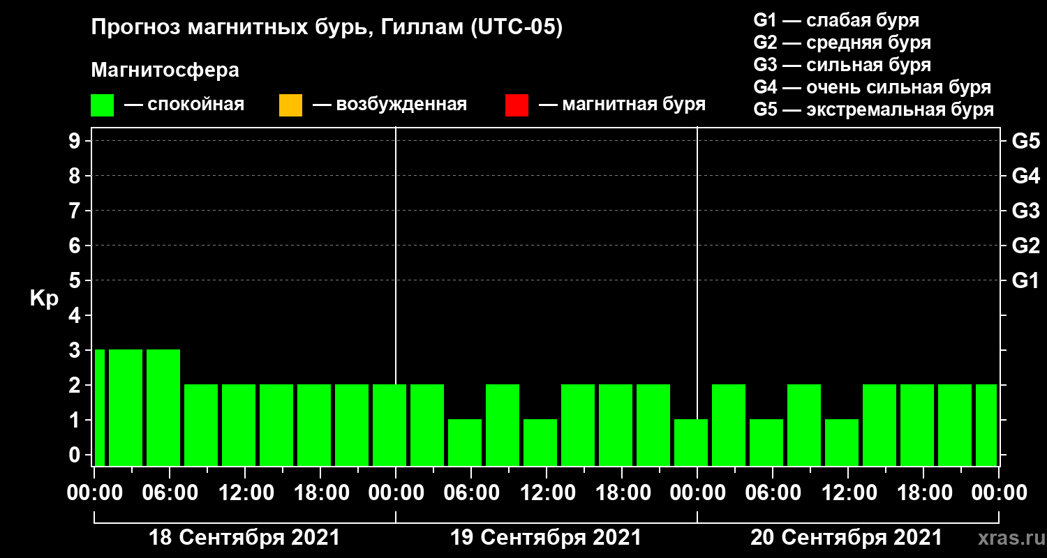 Прогноз магнитных бурь в Гилламе на 18 сентября 2021 года