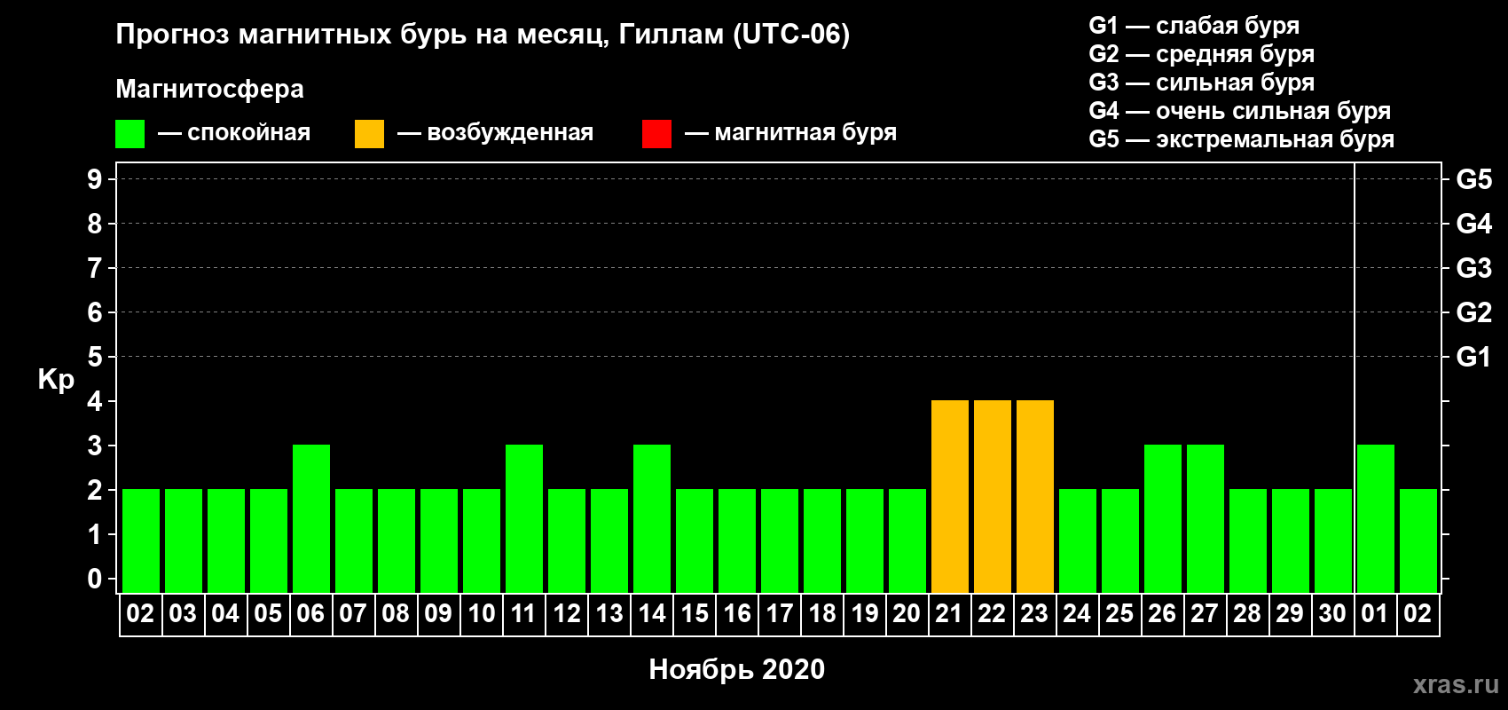 Прогноз магнитных бурь в Гилламе — 2 ноября 2020 года