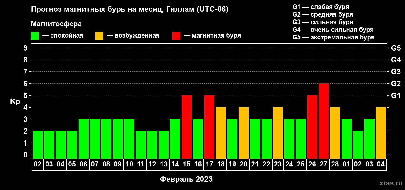 Прогноз магнитных бурь в Гилламе — 2 февраля 2023 года