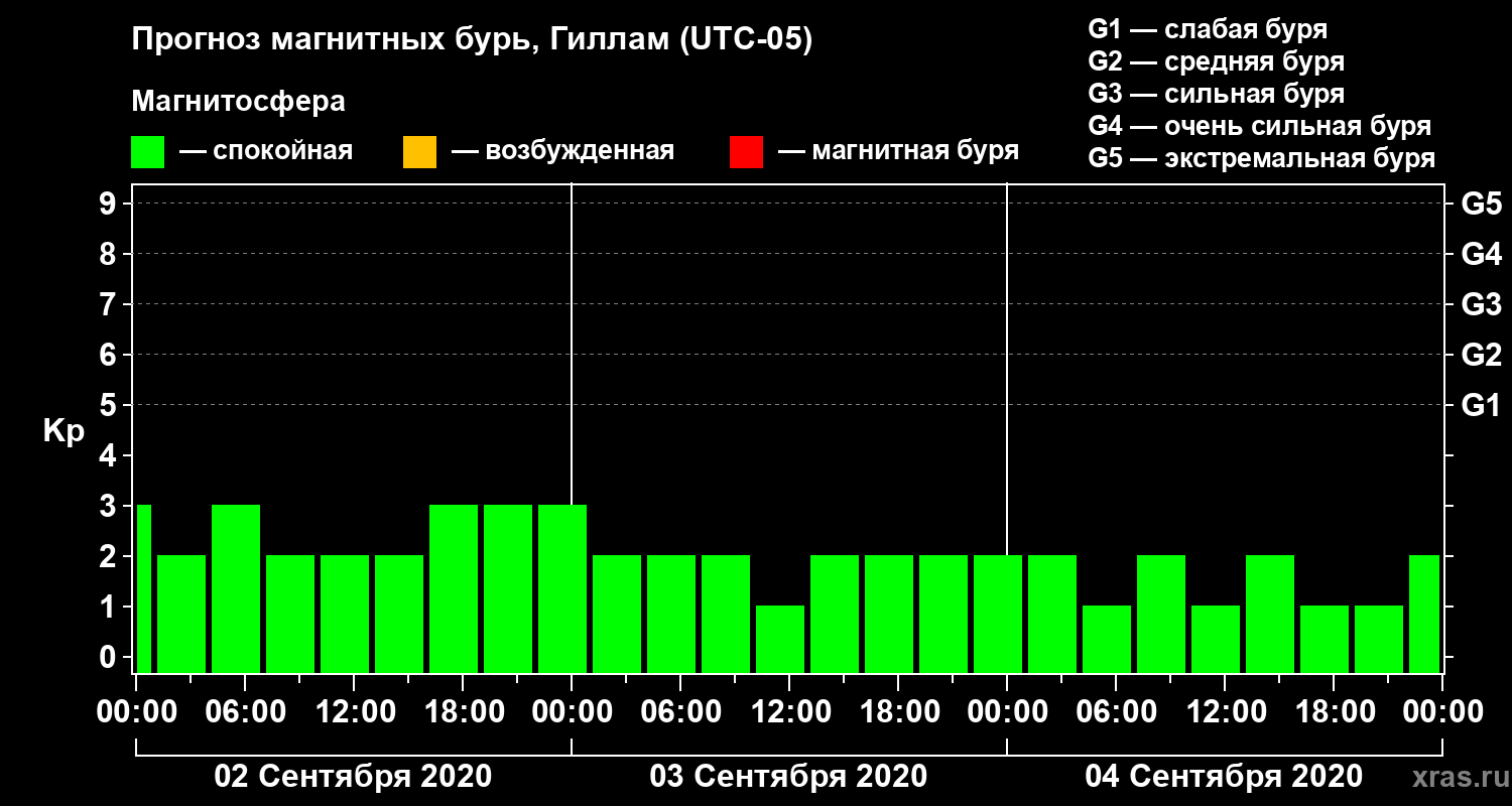 Прогноз магнитных бурь в Гилламе — 2 сентября 2020 года