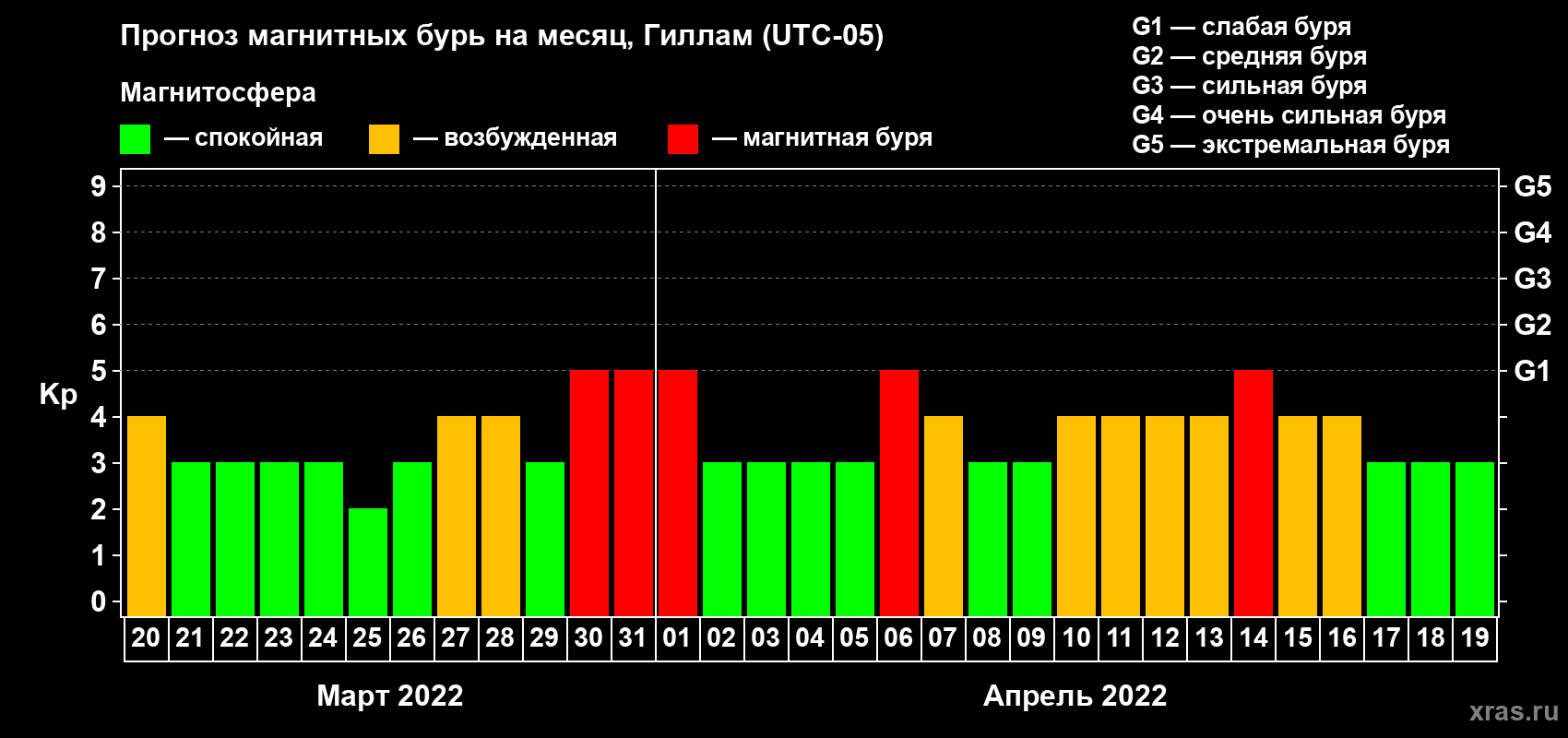 Прогноз магнитных бурь в Гилламе — 20 марта 2022 года