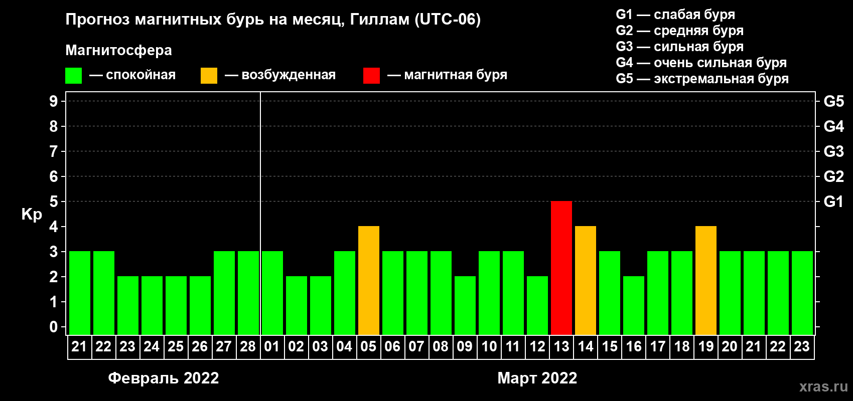 Прогноз магнитных бурь в Гилламе — 21 февраля 2022 года