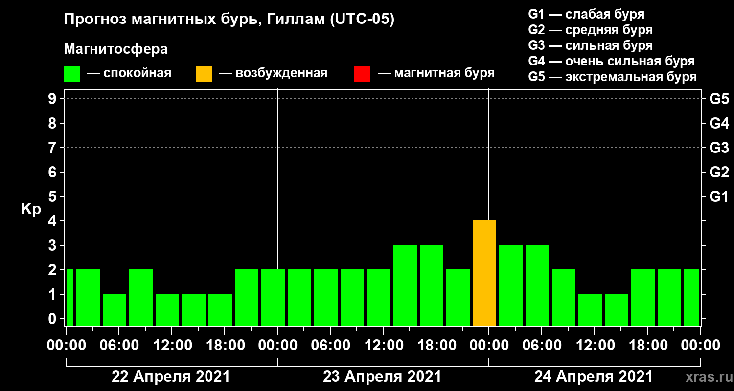 Прогноз магнитных бурь в Гилламе — 22 апреля 2021 года