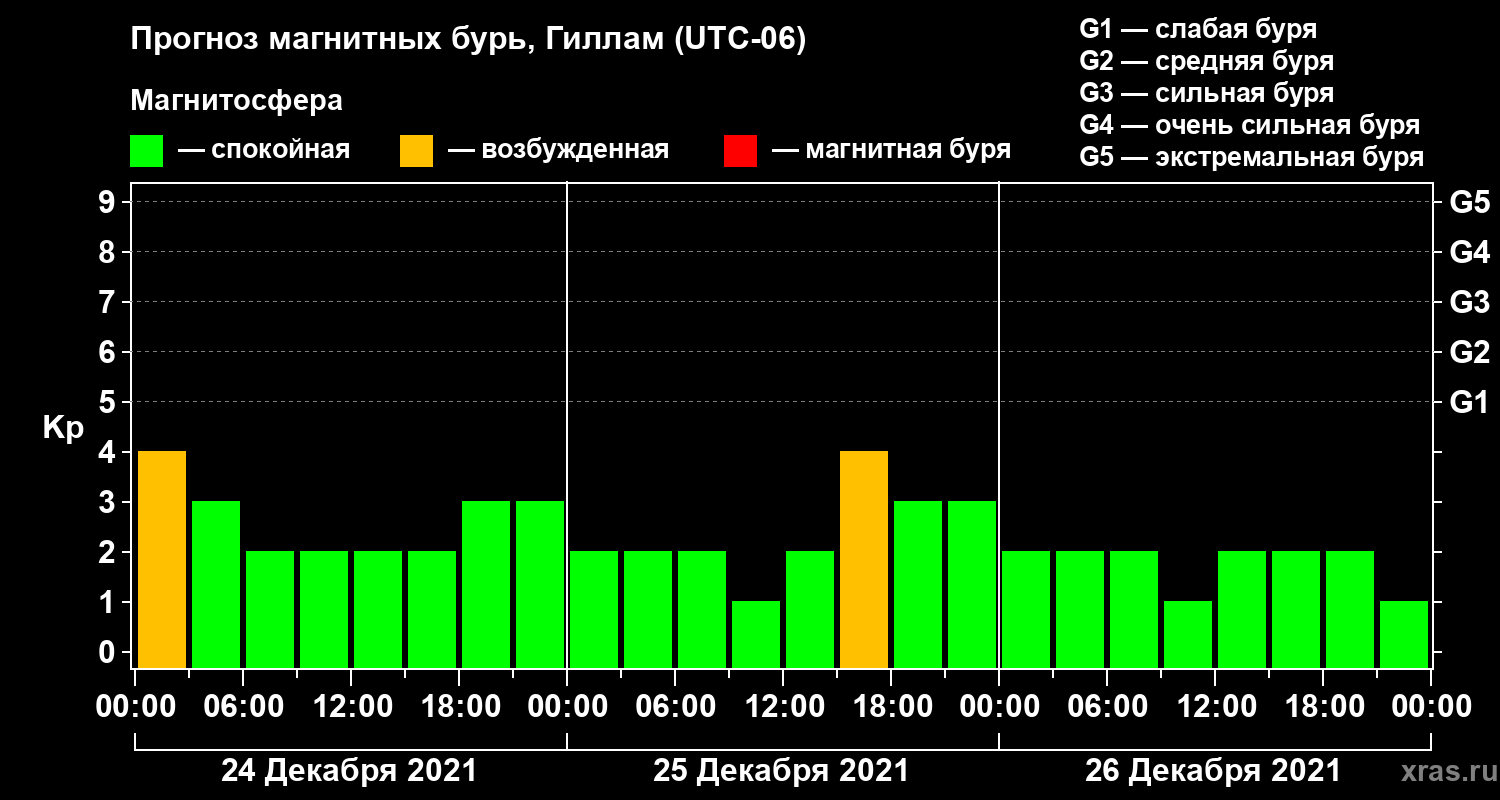 Прогноз магнитных бурь в Гилламе — 24 декабря 2021 года