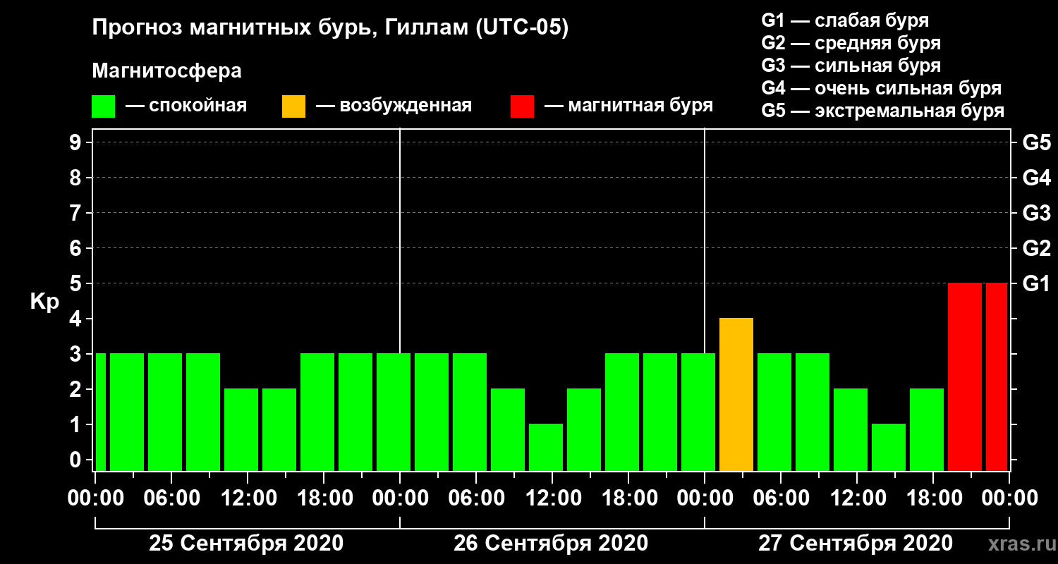 Прогноз магнитных бурь в Гилламе — 25 сентября 2020 года