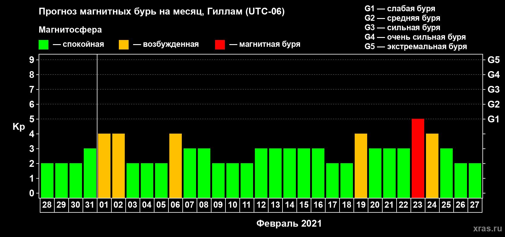 Прогноз магнитных бурь в Гилламе — 28 января 2021 года