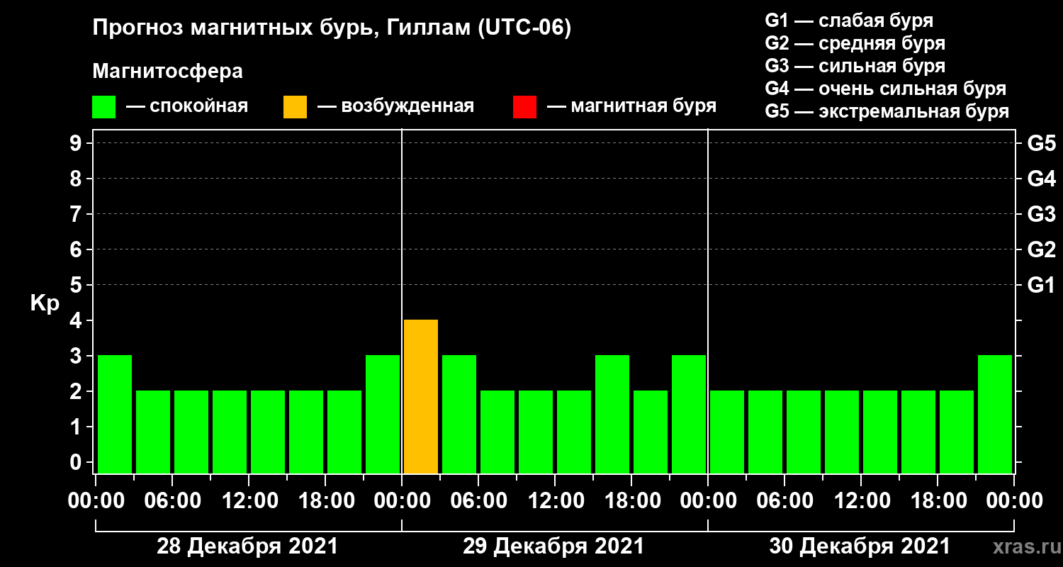 Прогноз магнитных бурь в Гилламе — 28 декабря 2021 года