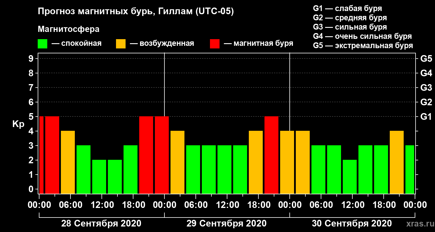 Прогноз магнитных бурь в Гилламе — 28 сентября 2020 года