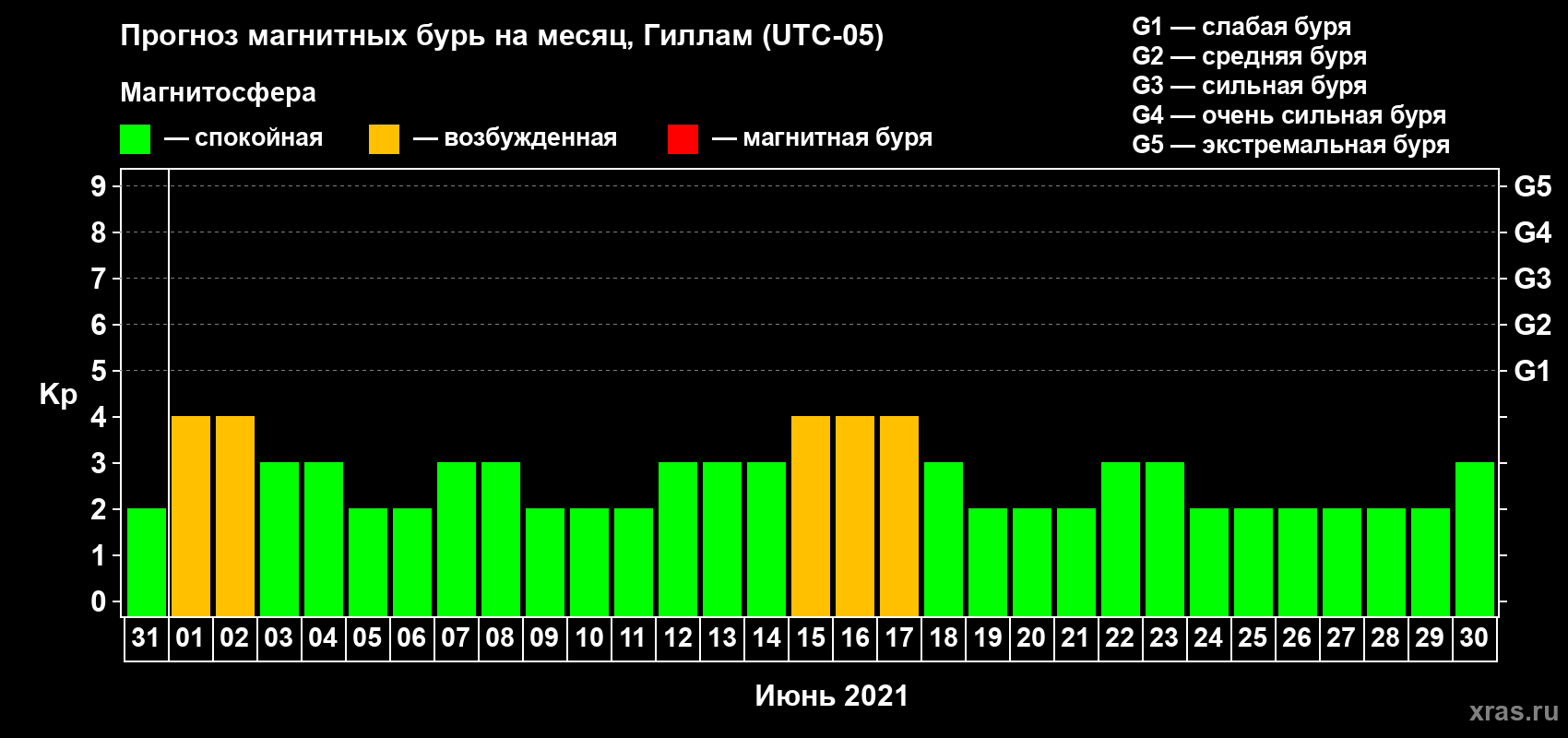 Прогноз магнитных бурь в Гилламе — 31 мая 2021 года