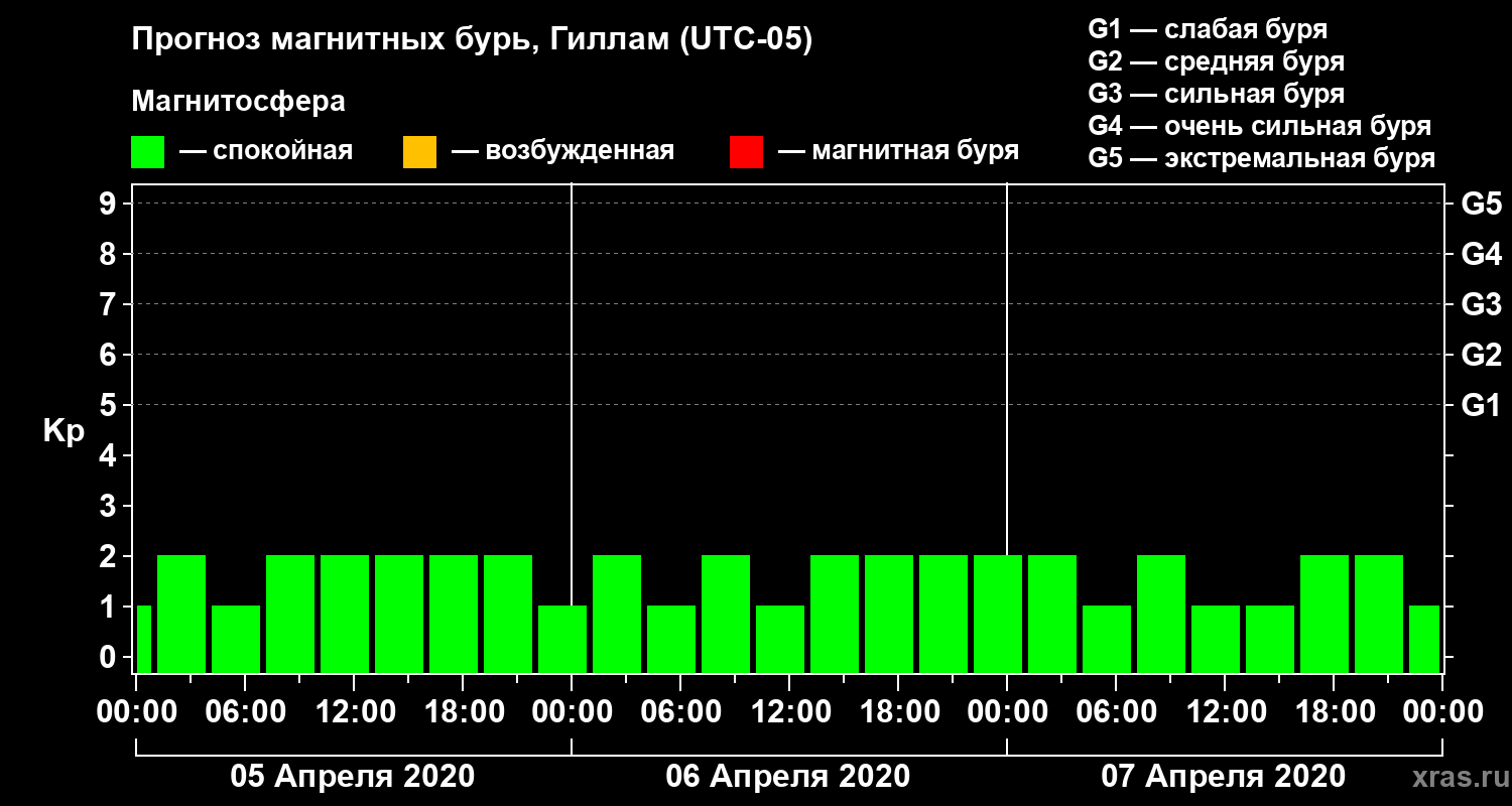 Прогноз магнитных бурь в Гилламе — 5 апреля 2020 года