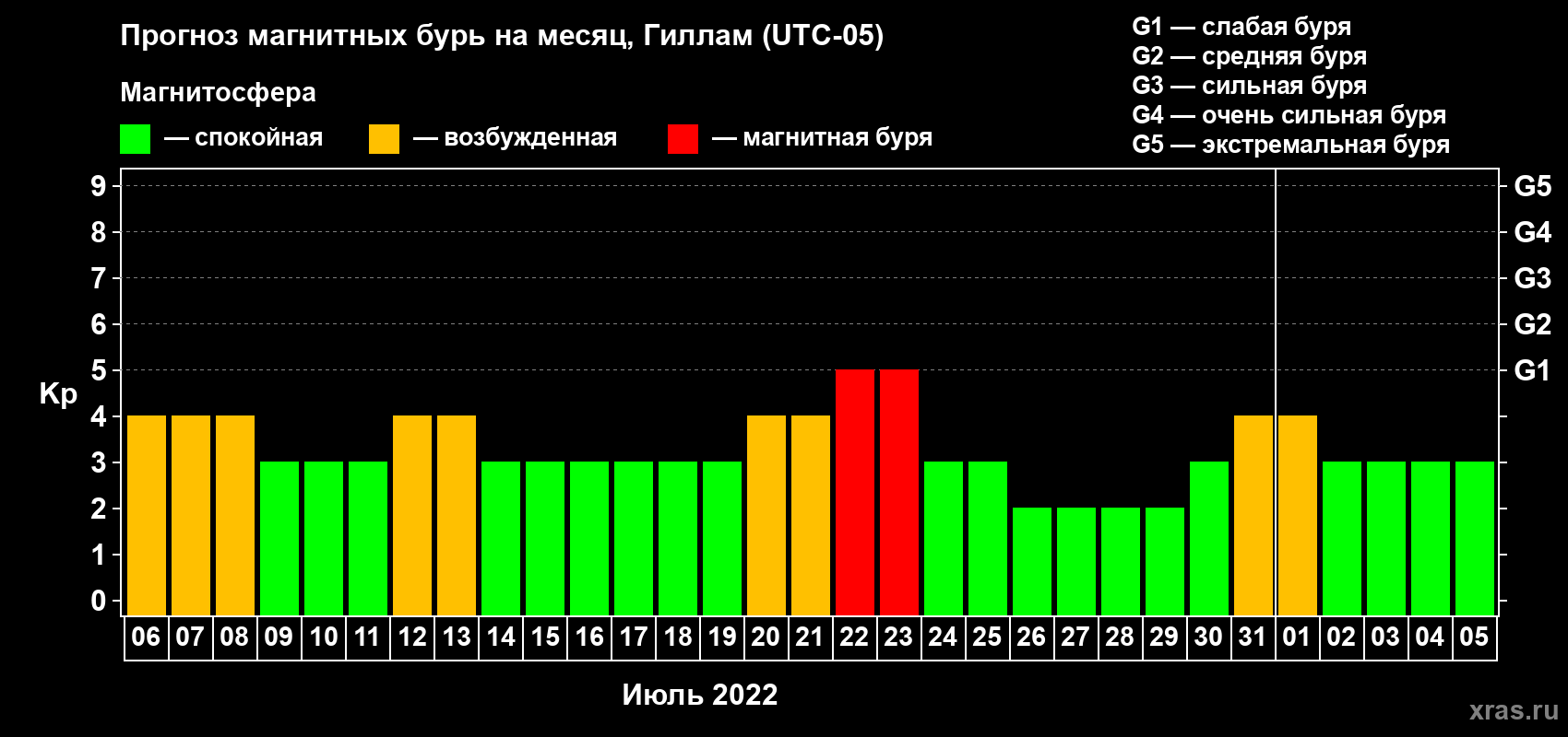 Прогноз магнитных бурь в Гилламе — 6 июля 2022 года