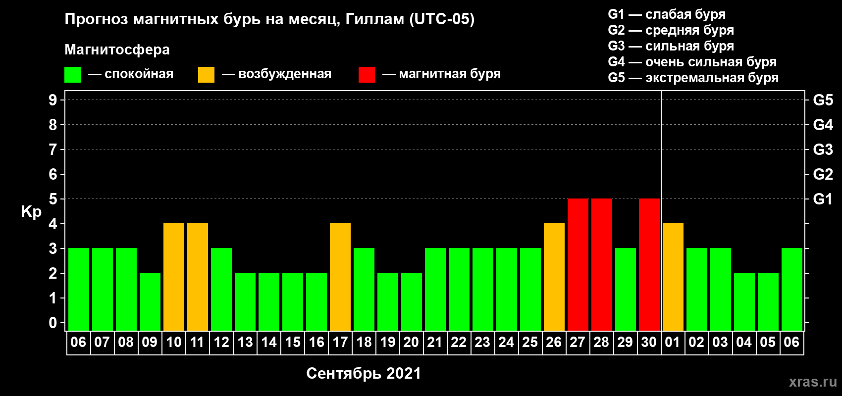 Прогноз магнитных бурь в Гилламе — 6 сентября 2021 года
